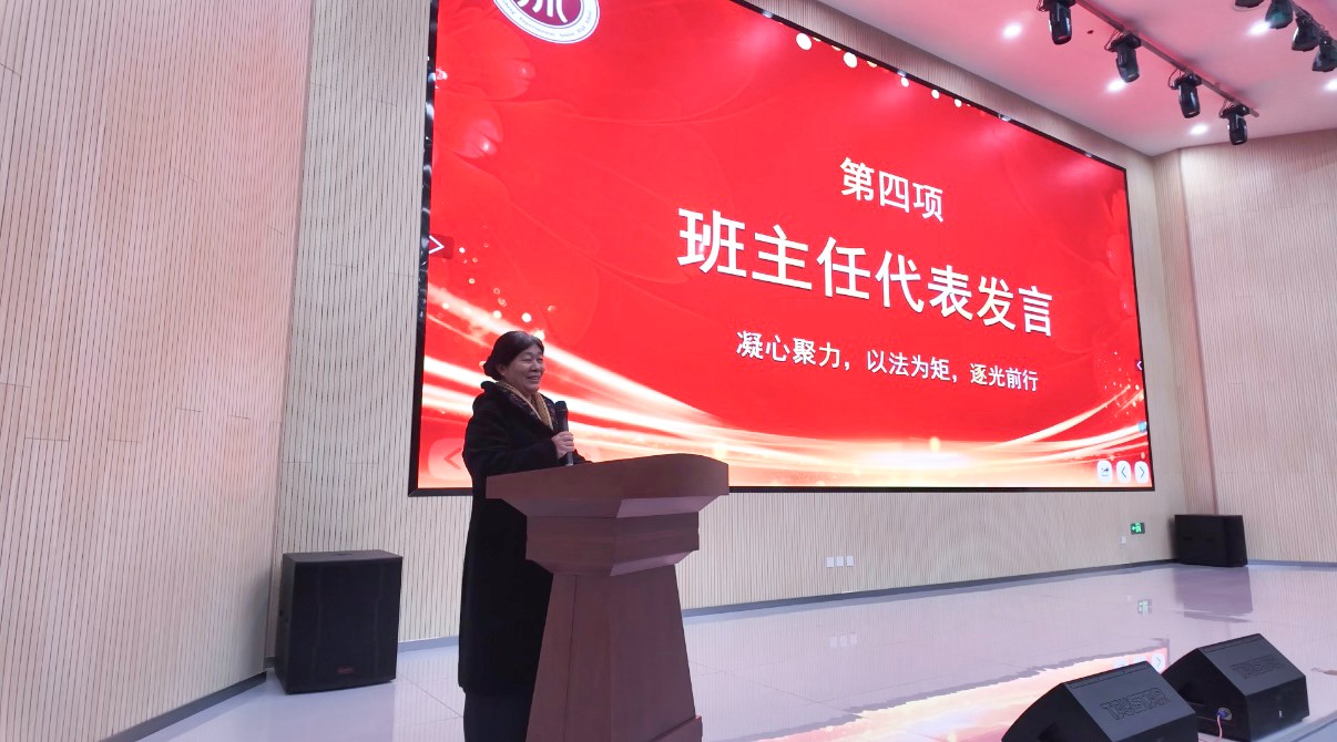 班主任代表王莹身老师分享育人理念与期末阶段班级管理方法。她引用《中华人民共和国教育法》相关规定,强调遵规守纪是冲刺的基础保障,号召全体学生自觉维护学习秩序,坚守诚信底线。同时,提出要精准制定复习计划、回归基础与错题、调整身心状态,以科学方法提升备考效率,并鼓励师生、同学间互助协作,凝聚集体力量攻坚克难。
